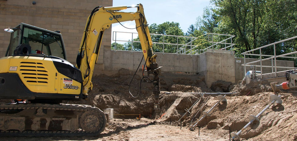 EBS was chosen for this project because of our expertise and ability to install helical piles in difficult soil conditions while maintaining the construction schedule, as well as small installation equipment to work within the limited space requirements.