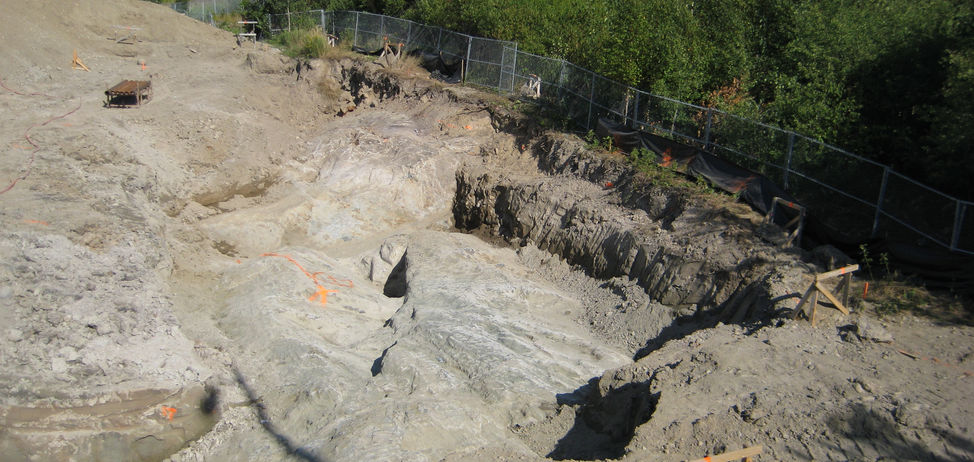 The geotechnical investigation identified loose soils over steep sloping bedrock and the need for a piling system.